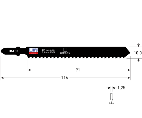 Zaagblad voorzien van geslepen HM tanden. Geschikt voor het zagen van GFK/Epoxy, Varicor, Corian (<65 mm).