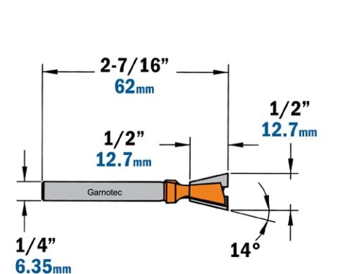D=12,7 x 12,7mm* 14° L=62* S=6.35 Z2*